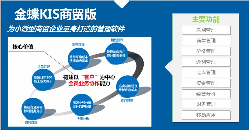 幫助企業(yè)高效經(jīng)營商品、理清資金。金蝶KIS商貿(mào)標(biāo)準(zhǔn)版,簡單專業(yè)、易學(xué)易用,是小型商貿(mào)企業(yè)的最佳選擇。